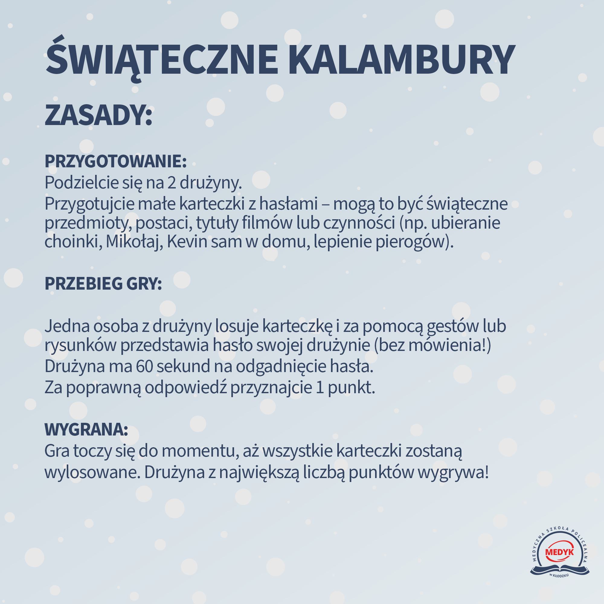 Święta to idealny czas, aby spędzić go z najbliższymi, z dala od telefonów i ekranów. Nasz kierunek Terapeuta zajęciowy przygotował dla Was pomysł na prostą, rodzinną grę zespołową, która rozweseli wszystkich i pomoże w integracji podczas świątecznych spotkań