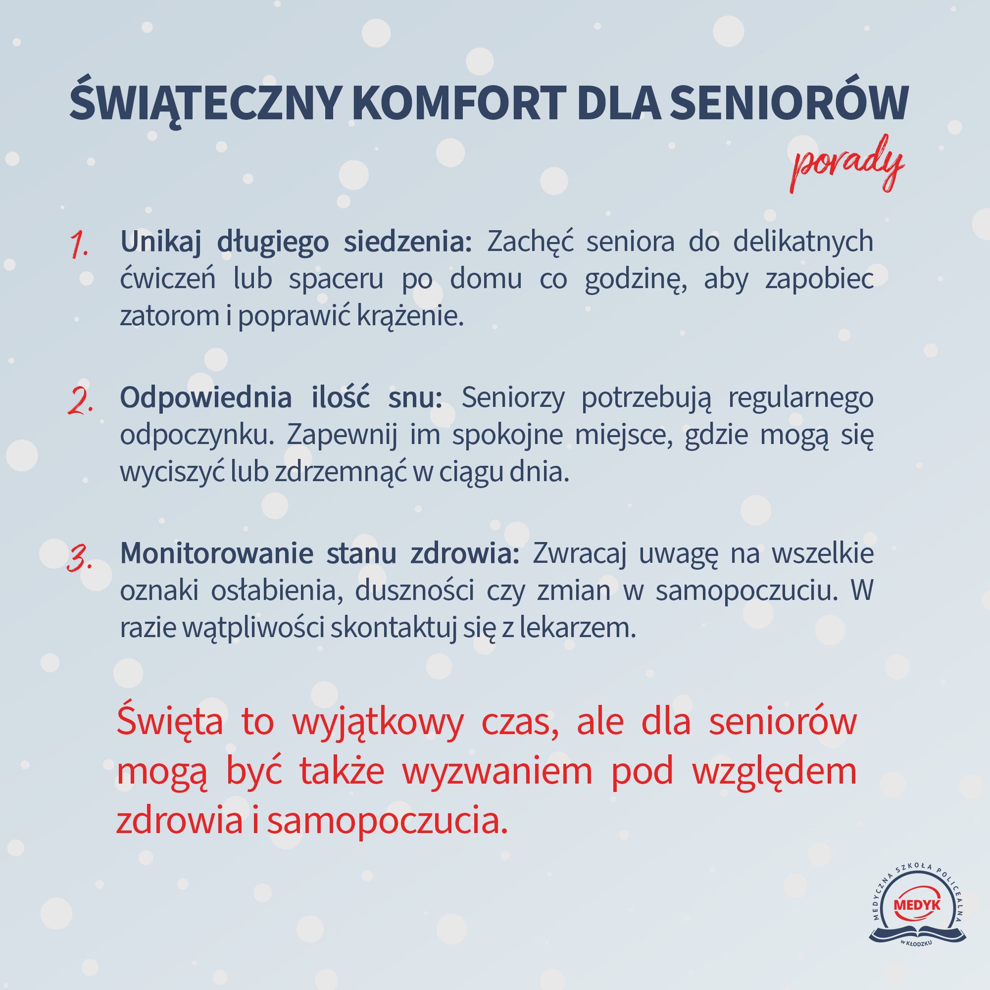 Święta to wyjątkowy czas, ale dla seniorów mogą być także wyzwaniem pod względem zdrowia i samopoczucia. Oto 3 porady, które pomogą zadbać o zdrowie i komfort starszych osób w tym magicznym okresie